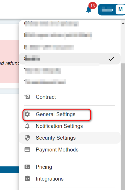 Click in upper right corner on the logo and select General settings
