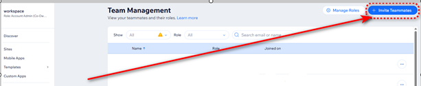Invite a new Team member: