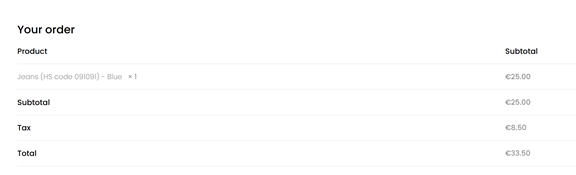 If a product was previously priced at 25 EUR , and after applying a price increase it now costs 33.5 EUR this reflects the updated pricing that includes the impact of the new tariffs or taxes.