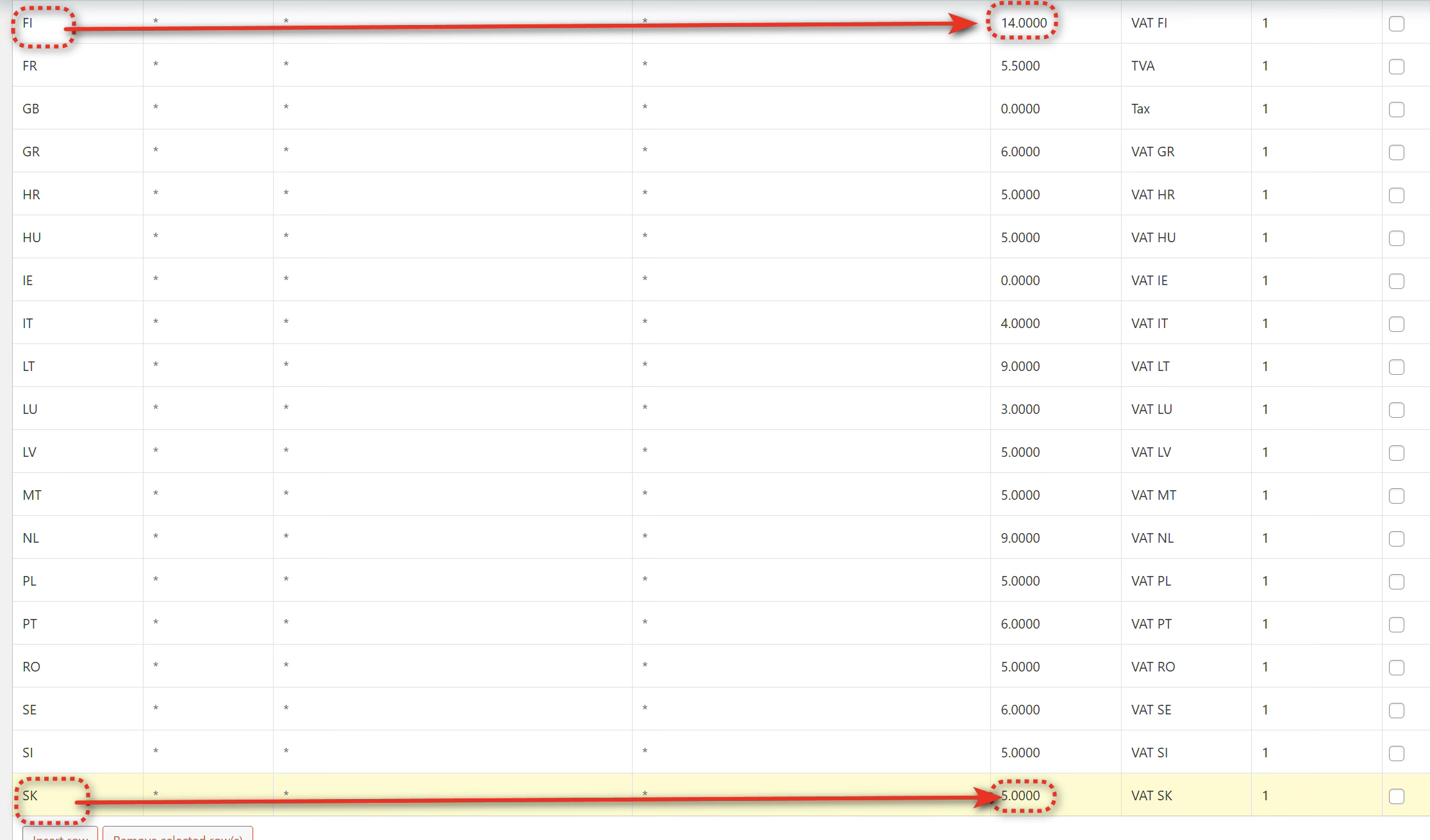 - If you sell books, the reduced VAT settings for printed books, audio books and E-books should be checked and amended manually. As such you will need to manually adjust the rates applicable to books/E-books/Audiobooks for Finland republic (country code FI) to 14 percent from current 10 percent. You may need to repeat the operation for all tax options related to books separately for printed , audio and E-books depending on the number of tax options in your store. You should make these changes asap. Do not delay these manual changes, since otherwise sales to Finland and Slovak republic will be done at the wrong rate .