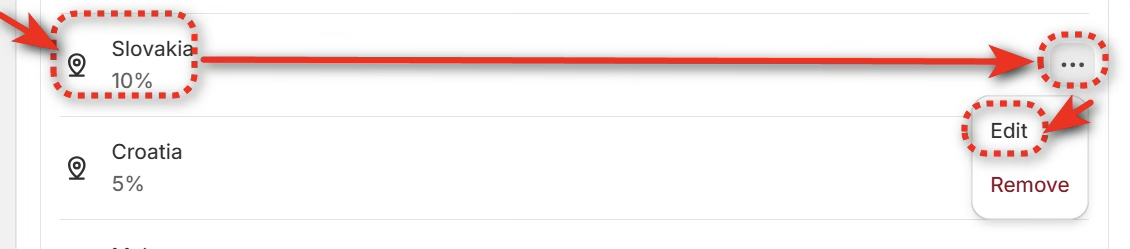 Find Slovakia in the list , press 3 dots and choose “Edit”: