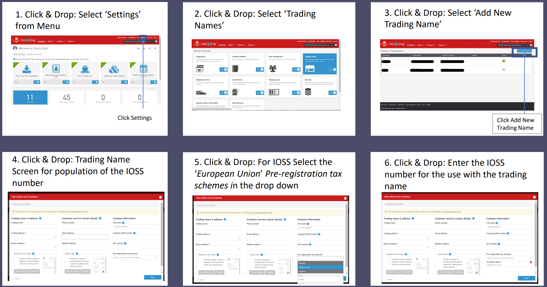Royal Mail Click & Drop instructions for IOSS: