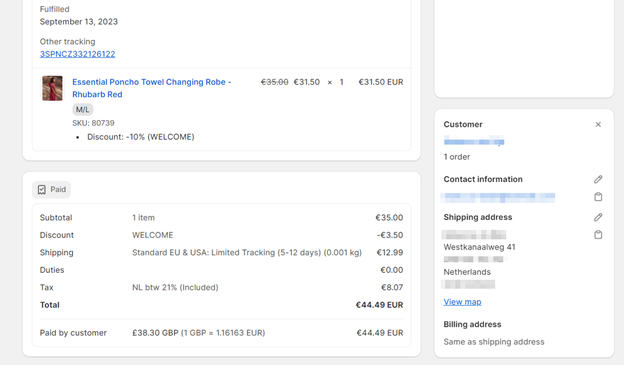 - Total tax = Tax for the products + Tax for the Delivery = 5.34€ + 2.73€ = 8.07€
