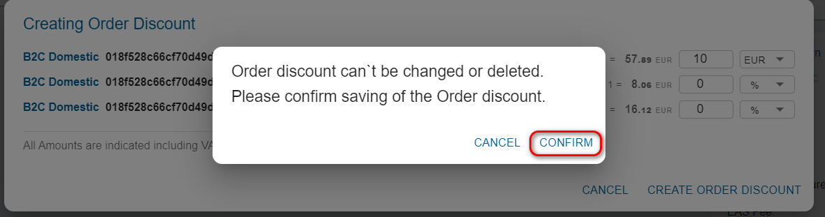 If the discount was applied in the same month as the original order, the corresponding VAT amount will be deducted from the monthly fiscal report. In cases where the discount is applied in the subsequent month, EAS will automatically create a correction entry for the post-sale discount VAT.