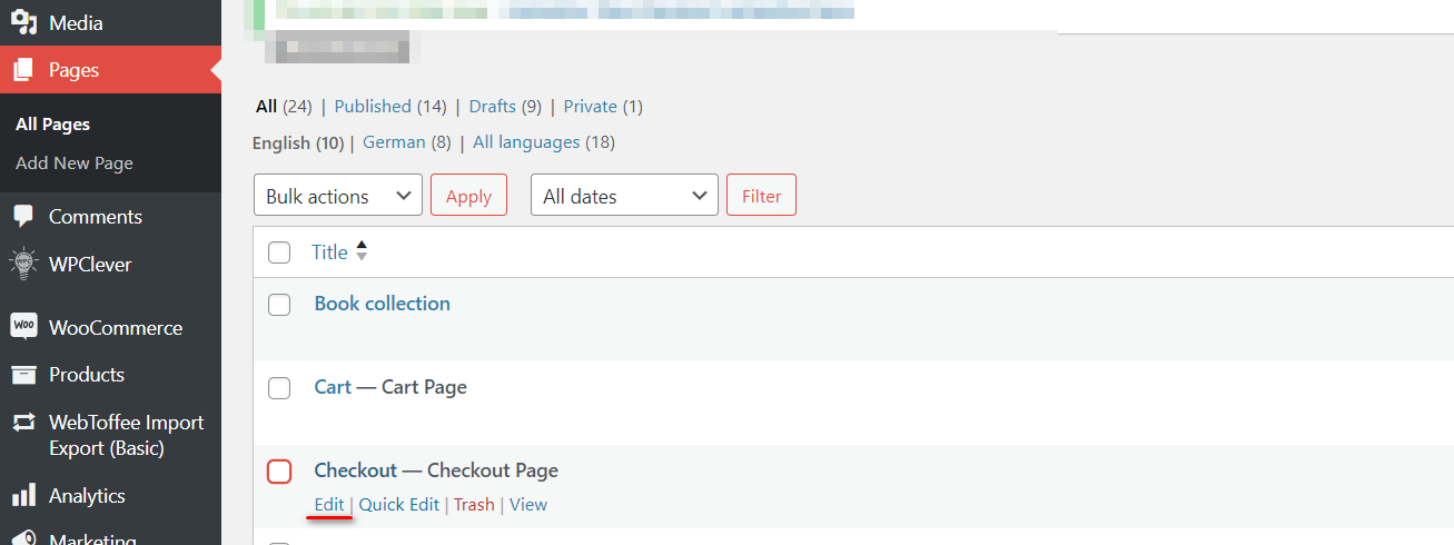 1. Go to "Pages" → "All page" in your WooCommerce admin dashboard.