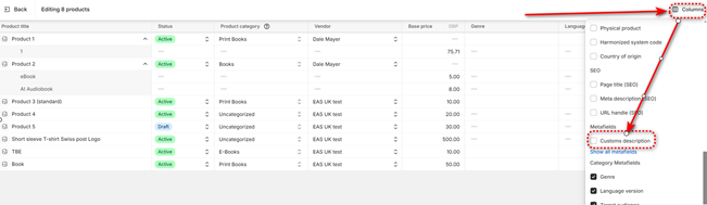 EAS will collect the meta field content automatically and will place it into the order on item level. Data received from Shopify will override previously input manual data. You still can change the description manually in the EAS dashboard though.