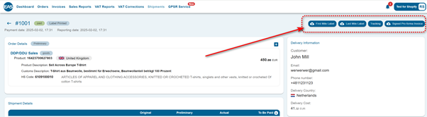 - Once ready for shipment, 4 new options appear: