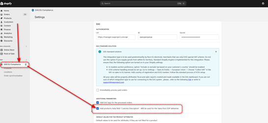 Shopify customers can mass input German description into their shops. EAS will collect that data from the shop and there will be no need for manual input of the German customs description in the EAS dashboard. See Annex 2 for instructions.