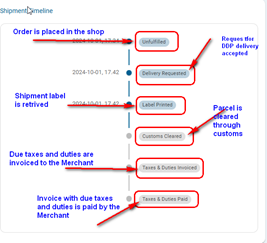 - “Check order information” means that either the process of DDP shipment has not been started yet or there are still issues with recipient or parcel content data. Pressing the button will redirect to the order content;