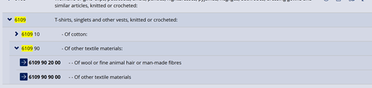 The code used for the item is: 6109 90 90 (00)