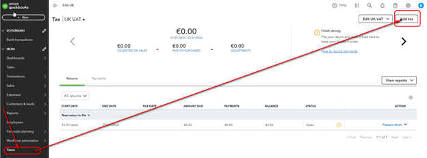Open the tax settings in QuickBooks.