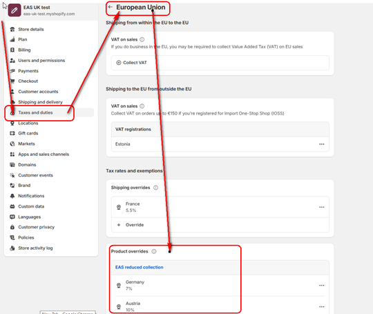 Come back to the Shopify store and ensure that overrides for reduced VAT rates are setup: