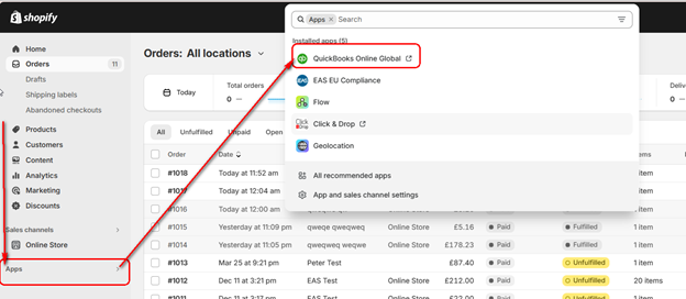 Open Applications and choose QuickBooks Online Global.