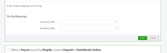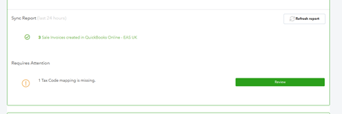- Press "Review" and map the tax rates from Shopify to the correct rates in QuickBooks.