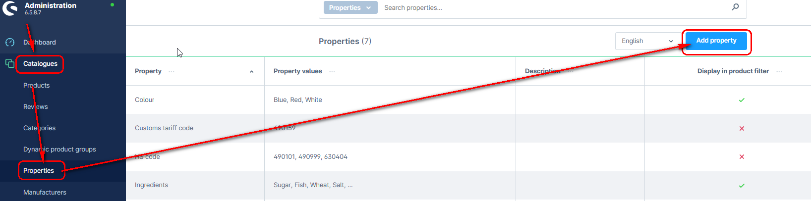 In the main administrative menu Go to Catalogues>Properties >Add property