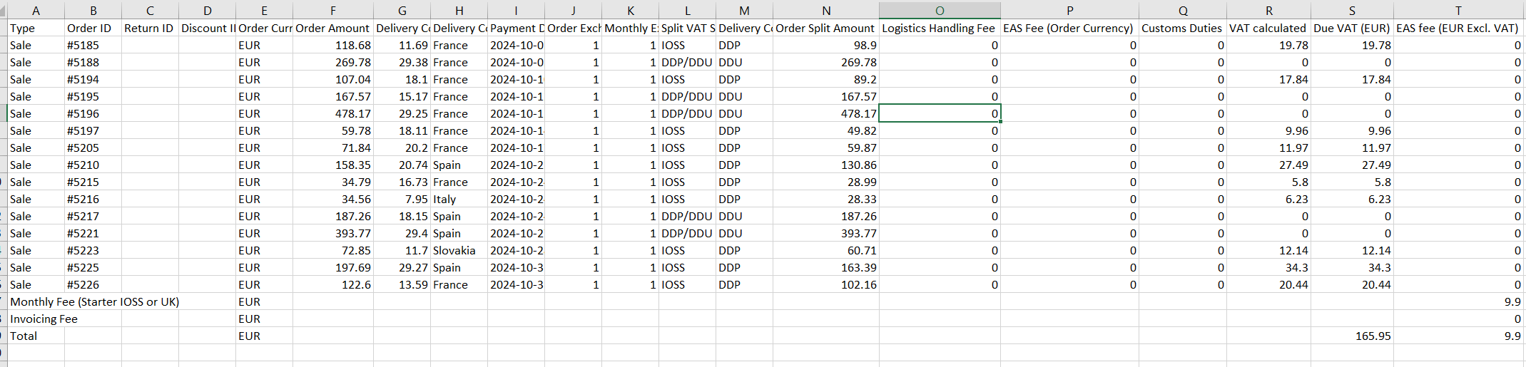 | EAS fee (EUR Excl. VAT) | EAS transactional fee in EUR. Order exchange rate used to convert from order currency |