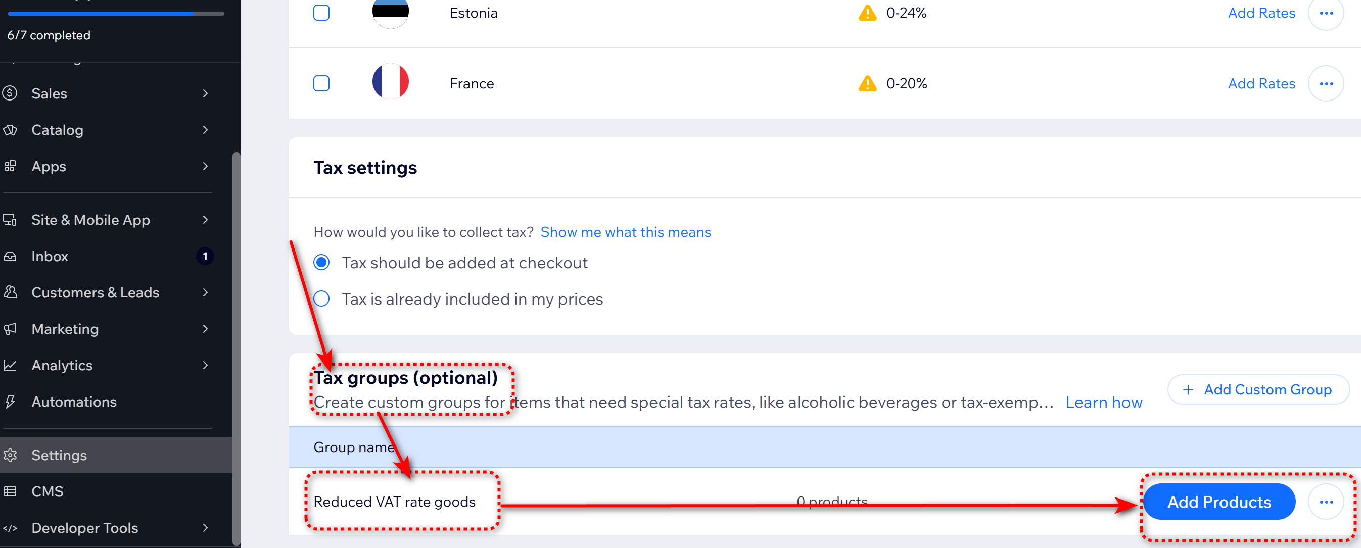 Adding VAT rates in Wix is optional step for configuring Wix store but is preferable to being able to sell cross-border in compliance.