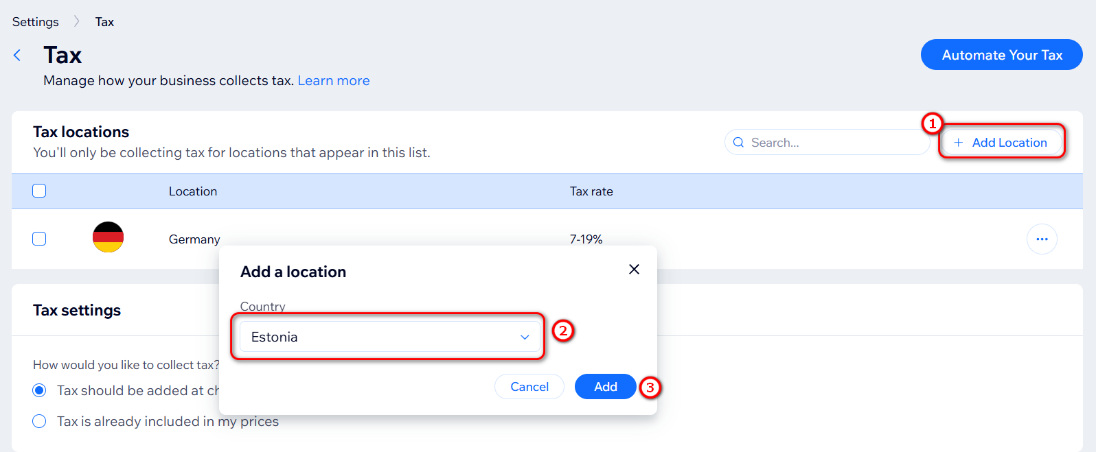 This article describes how to add EU VAT rates to the Wix store from the scratch.