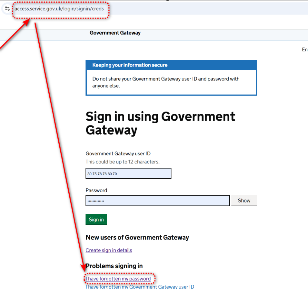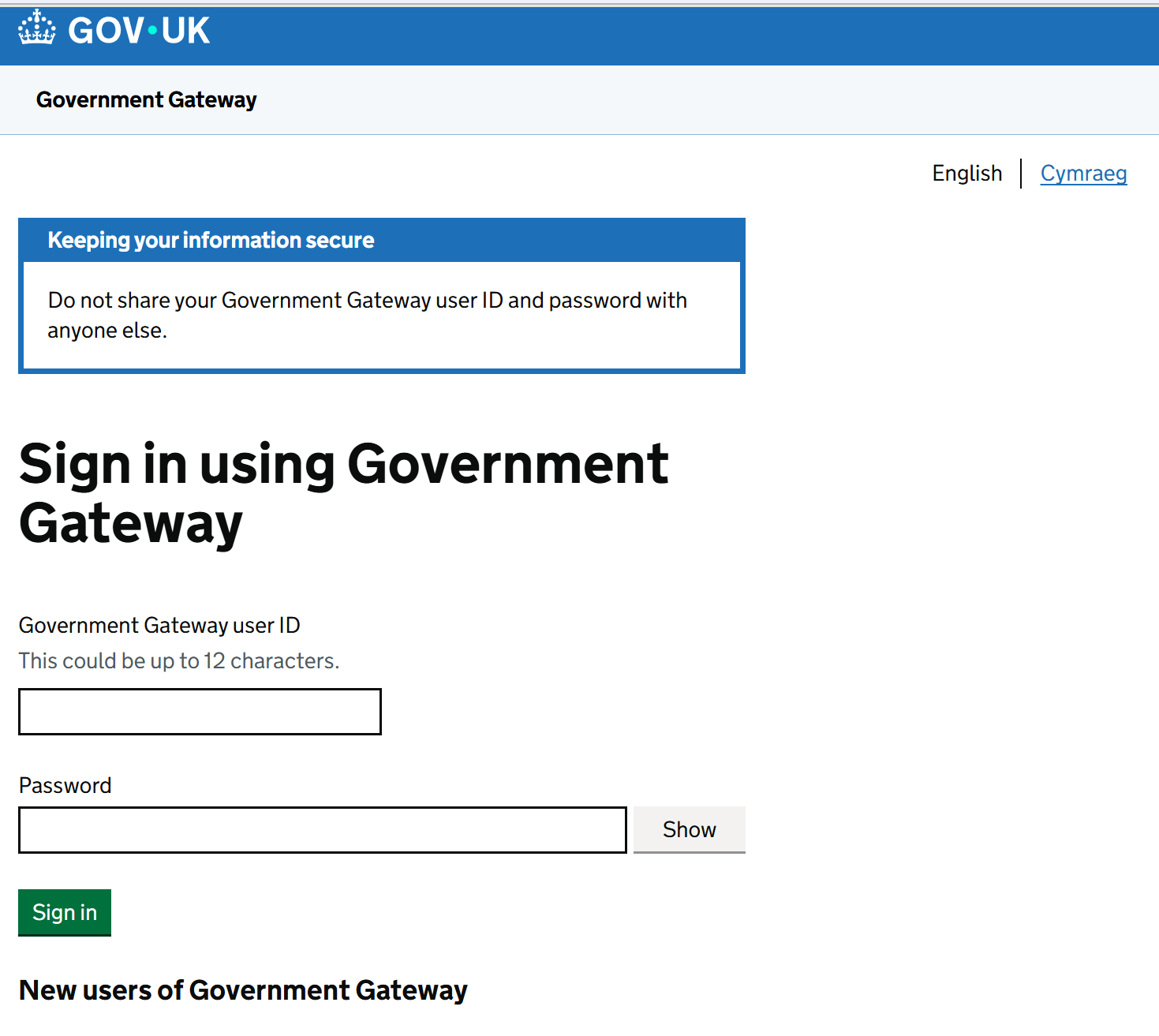 You will need your Government gateway ID (12 digits) and your password to access the Government gateway. In most cases you have already accessed the Government gateway and have the ID and the password in your browser. If you have not saved it in your browser , search your e-mail with "HMRC" as the search word and you will find the message received from HMRC. You can always restore the password if you have lost it by going to the HMRC sign in page and pressing the "I have forgotten my password":