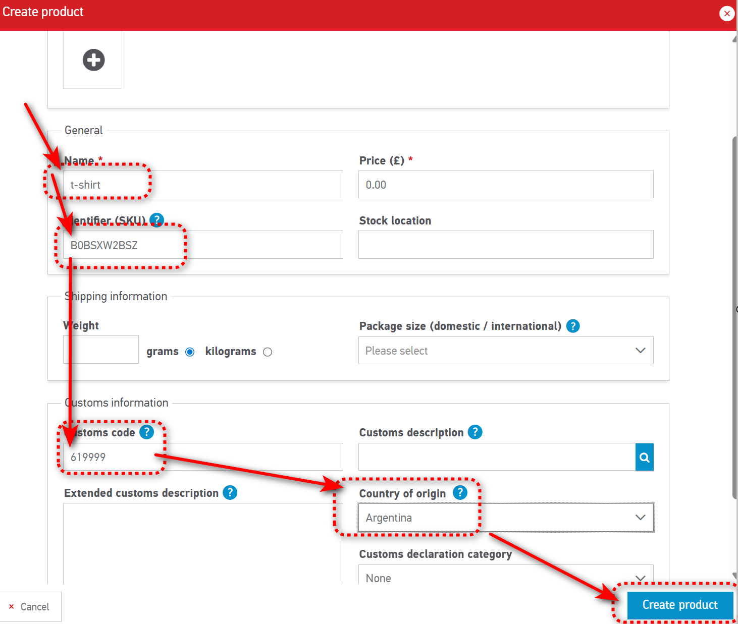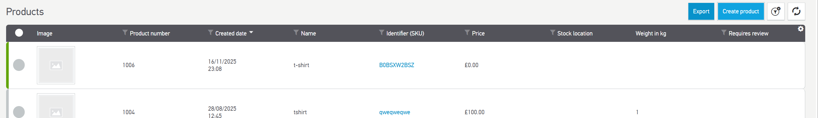 MAke sure that the SKU code matches exactly the one used in the store, since the item is identified and matched by the SKU code. Press "Create product" as soon as you are finished with customs attributes. New product becomes visible in the list :